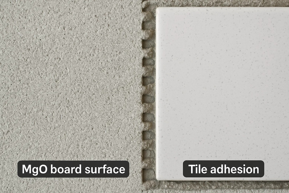 Obie deski zapewniają doskonałe powierzchnie do przyczepności. Kluczowa różnica polega na metodzie. Porowata natura płyty cementowej pozwala cienkiemu zaprawowi wiązać się mechanicznie, gdy leczy się w powierzchni. Niektórzy producenci zalecają przygotowanie powierzchni w celu zmniejszenia chłonności i zapobiegania zbyt szybkim wyschnięciu cienkiego suszonego, co może osłabić wiązanie. Gładka, gęsta powierzchnia MGO Board zapewnia potężne wiązanie chemiczne z cienką osłoną, zapewniając, że płytki przylegają bezpiecznie i działają przez lata.